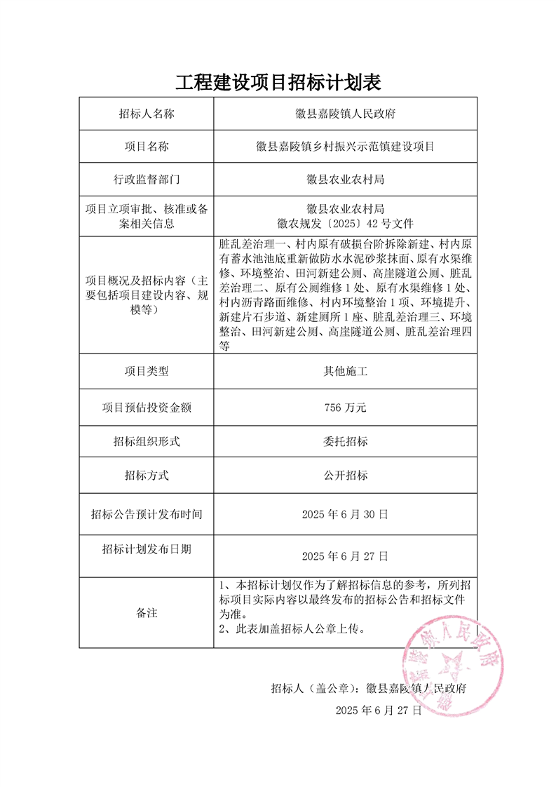 徽縣嘉陵鎮(zhèn)鄉(xiāng)村振興示范鎮(zhèn)建設項目