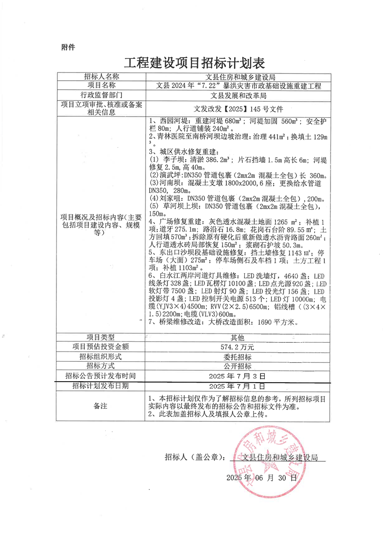 文縣2024年“7.22”暴洪災(zāi)害市政基礎(chǔ)設(shè)施重建工程