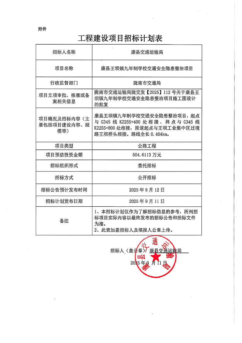 康縣王壩鎮(zhèn)九年制學(xué)校交通安全隱患整治項目