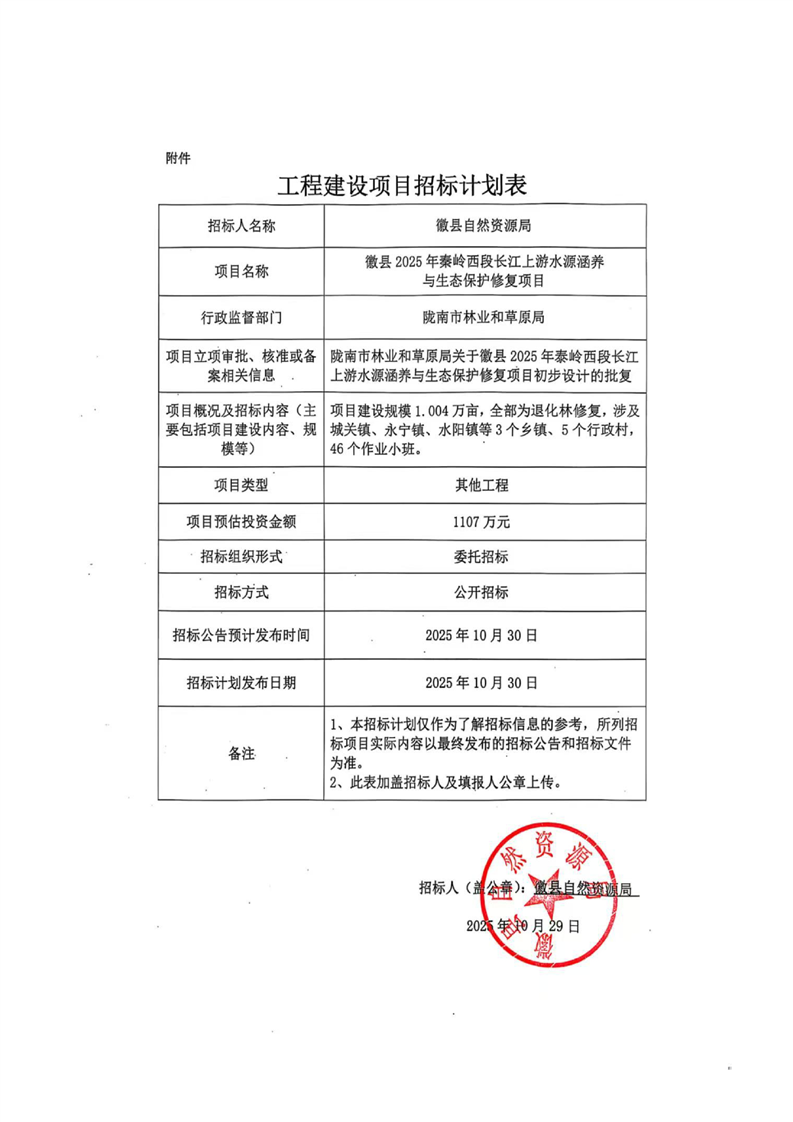 徽縣2025年秦嶺西段長(zhǎng)江上游水源涵養(yǎng)與生態(tài)保護(hù)修復(fù)項(xiàng)目