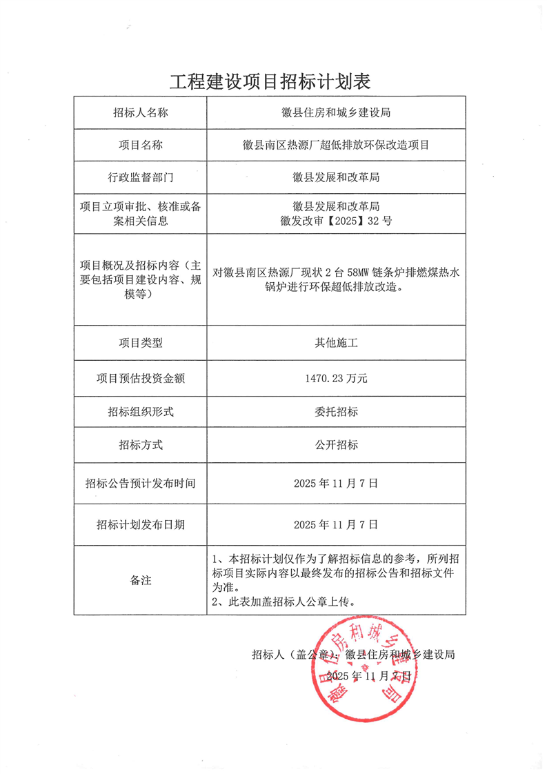 徽縣南區(qū)熱源廠超低排放環(huán)保改造項(xiàng)目