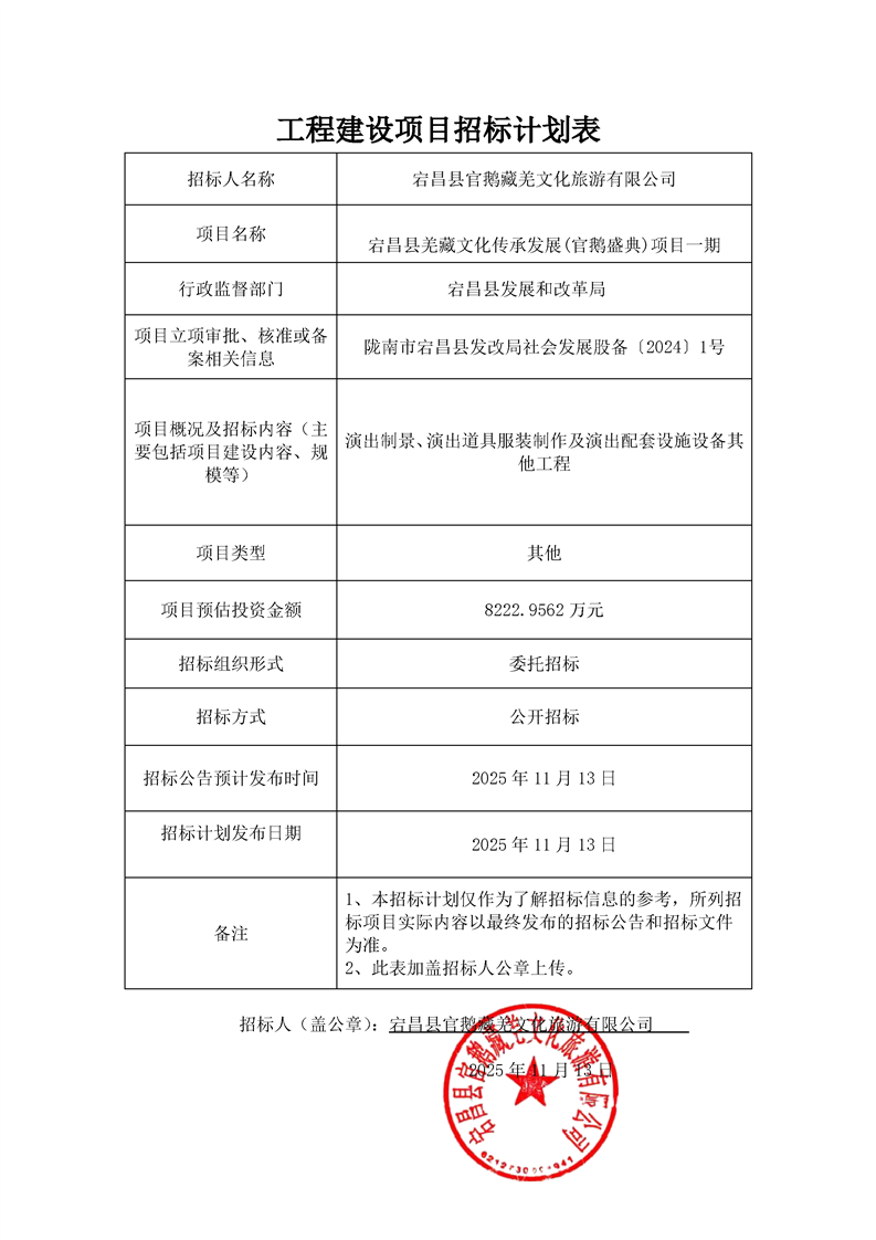 宕昌縣羌藏文化傳承發(fā)展(官鵝盛典)項(xiàng)目一期
