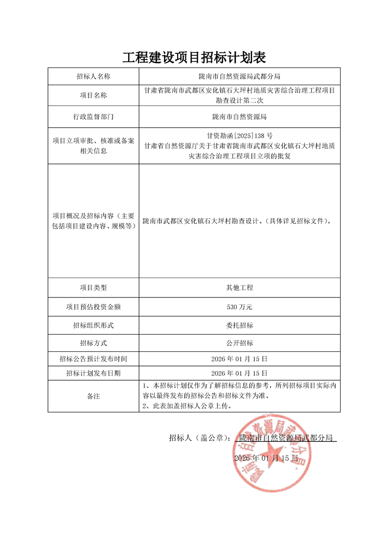甘肅省隴南市武都區(qū)安化鎮(zhèn)石大坪村地質(zhì)災害綜合治理工程項目勘查設(shè)計第二次