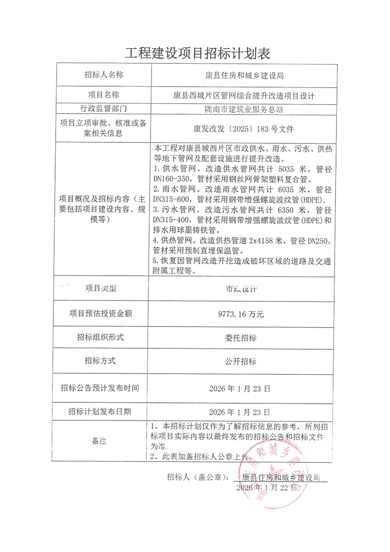 康縣西城片區(qū)管網(wǎng)綜合提升改造項(xiàng)目設(shè)計(jì)